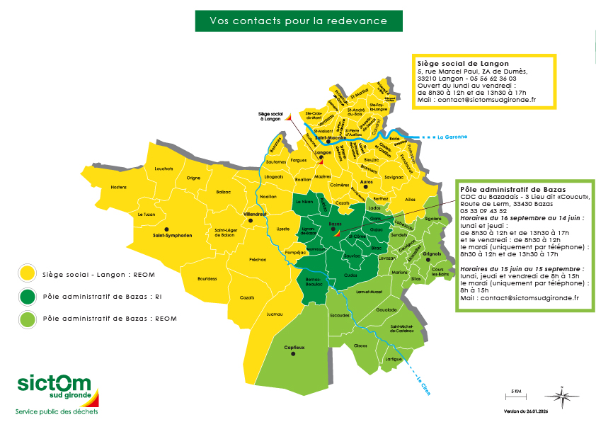 Sur le territoire du Sictom du Sud-Gironde, deux modes de financement existent. La Redevance d’Enlèvement des Ordures Ménagères (REOM) sur 72 communes et la Redevance Incitative (RI) sur 13 communes.